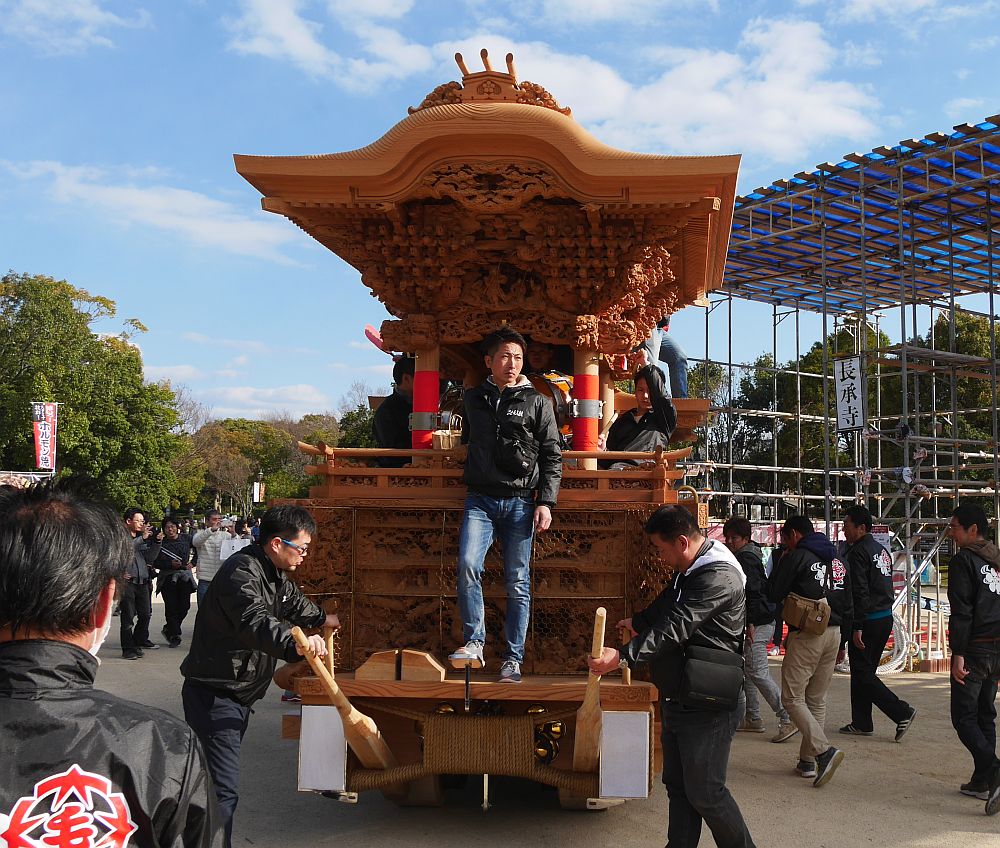 左端の長承寺地車に鳴り物係が乗り込みました。