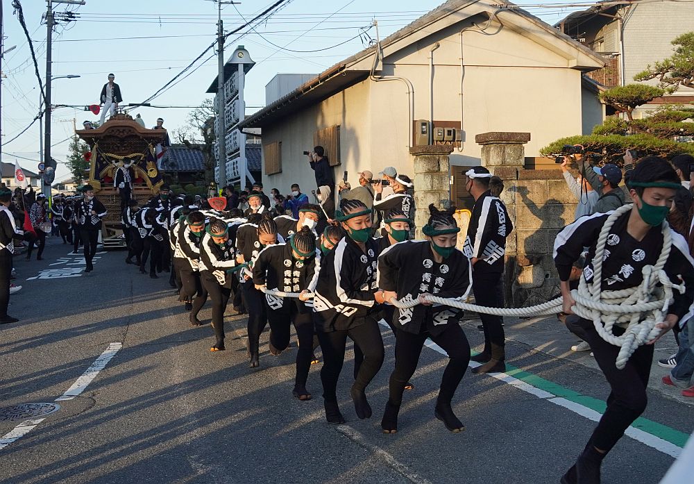 私はだんじり小屋出発から町会館前休憩までの曳行を見物してきました。
